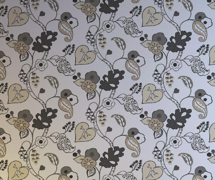 Angielskie tapety ścienne Clarke & Clarke z motywami kwiatów. Tonacja czarno- biało- brązowa.